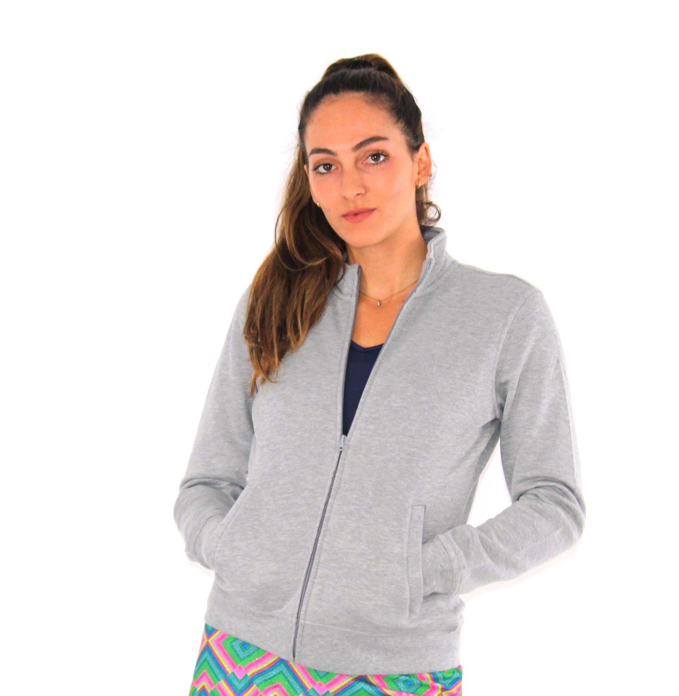 -  Características Destacadas:– Diseño Adaptado: Su forma se ajusta al cuerpo femenino, realzando tu silueta de manera favorecedora.– Cuello Elegante: El cuello de esta sudadera proporciona un toque sofisticado y acogedor.– Bolsillos Prácticos: Ideal para guardar tus esenciales mientras te mantienes activa.– Canalé Elástico: Con doble pespunte para mayor durabilidad y comodidad.Composición y Gramaje– Gramaje: 280 g/m², lo que garantiza una prenda cálida y resistente.Disponible en distintos colores y tallas